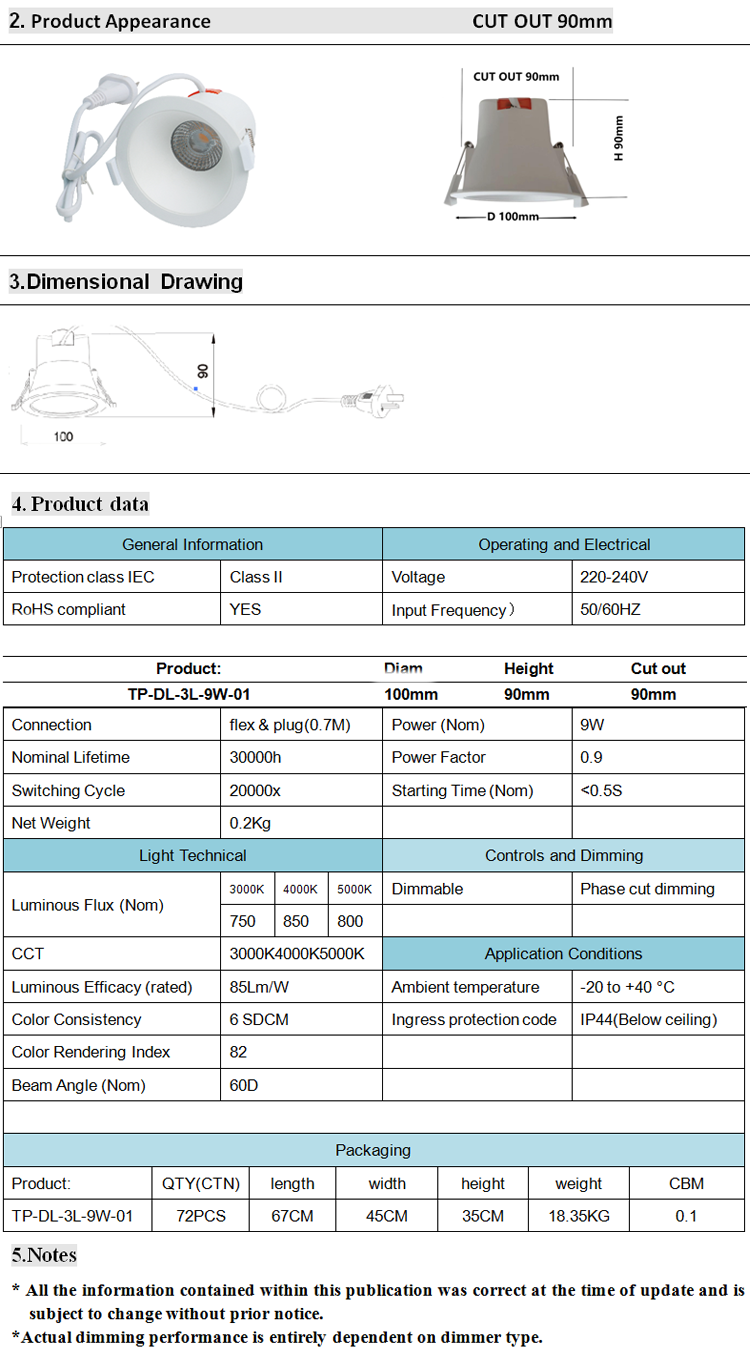 -Built-in adjustment switch,3000K/4000K/5000K selection.