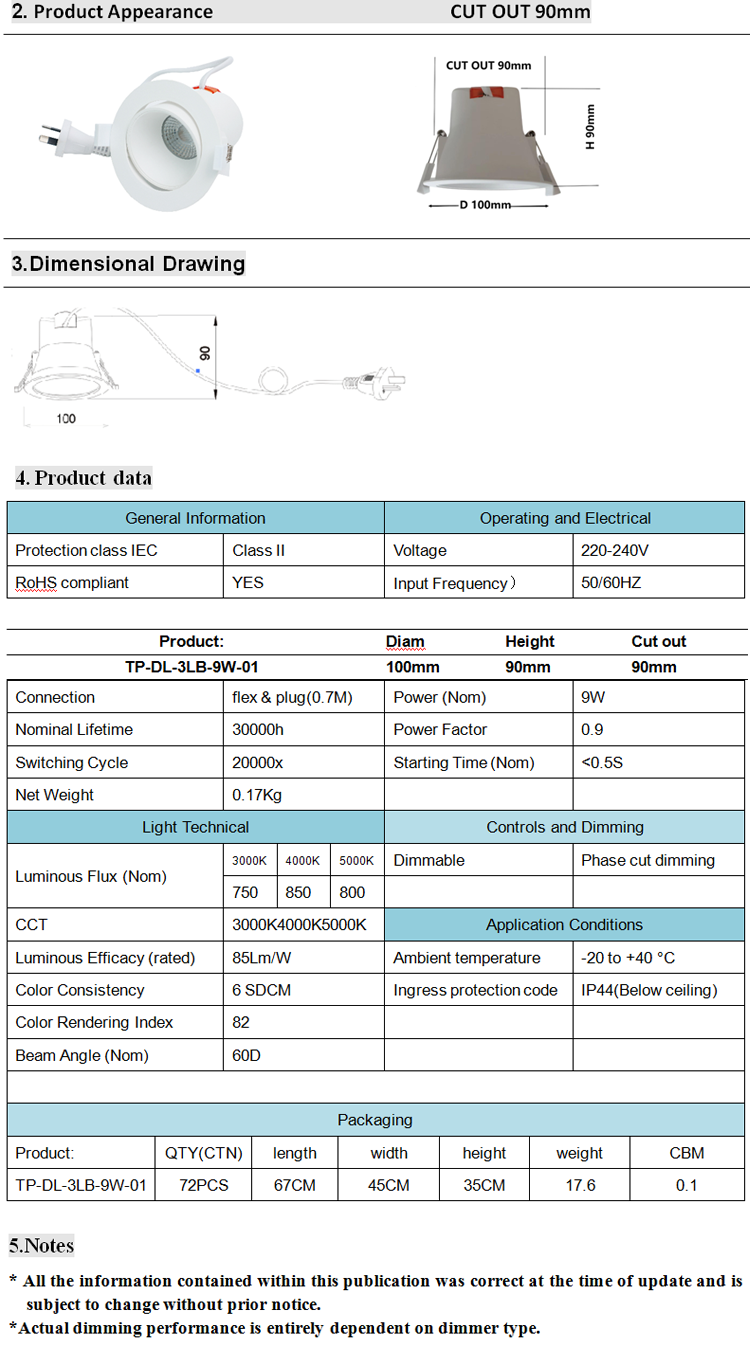 -Built-in adjustment switch,3000K/4000K/5000K selection.