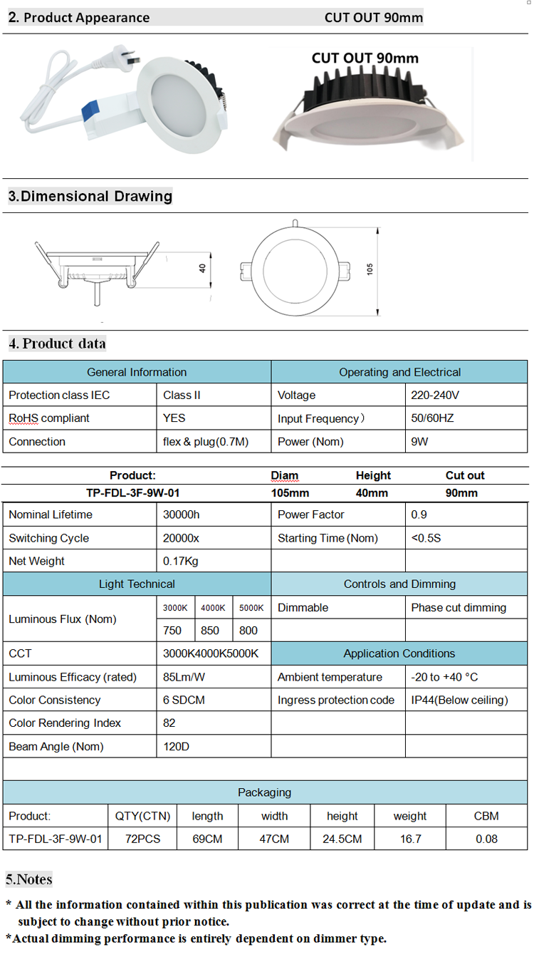 -Built-in adjustment switch,3000K/4000K/5000K selection.